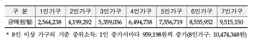 가구별 기준 중위소득 값 편집(원)
